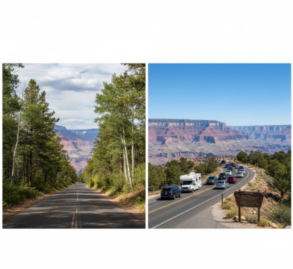 I guess what I’m saying is this: drive to the South Rim for infrastructure and guaranteed access, but drive to the North Rim for the strange satisfaction of having worked harder for basically the same hole in the ground, except quieter, greener, and somehow more canyon-y in ways that don’t quite make sense until you’re standing there at sunset, watching shadows fill a billion-year-old geological story while exactly seven other people share the moment instead of seven thousand.